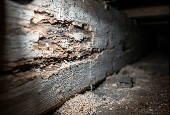 - Fine sawdust or Frass (termite droppings) near infested areas.